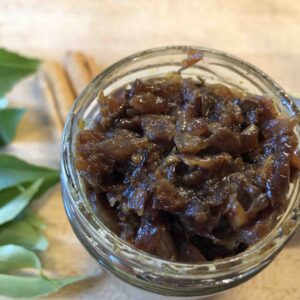 I experimented with chutney recipes in the past couple years and this recipe below that I’m sharing uses a ton of spices as spicy chutneys always seem to do. I skip the vinegar and add lemon juice. Also I have increased the ginger a lot. I find it comes kind-of close to a Sri Lankan chutney but the texture is soft and the taste of something as delicious as mango is not quite there in the apple. But it certainly makes an awesome condiment to any rice-and-curry meal.